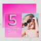 Add a personal touch with this pink glitter 5th birthday invitation featuring your child’s photo and a fabulous modern design.