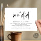 Marque o começo de sua eternidade com elegância usando nosso cartão de convite para comemoração de festas do janto de elopemento do casamento, com tema contemporâneo, "Nós fizemos". Perfeito para os casais estendendo sua alegre ocasião, este convite exude sofisticação com uma sugestão de brincadeira, definindo o palco para um evento memorável. Adorado com um tema design de roteiro moderno de eterno, ele adiciona um toque de encanto refinado às suas festividades. Feito por TeeshaDerrick, este convite promete capturar maravilhosamente sua história de amor.