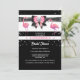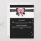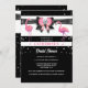 Um arco preto-e-rosa-solteiro, preto-e-rosa, revestido de uma faixa de ouro, tem uma camada de diamante e é colocado sobre um fundo listrado branco e preto, coberto por cintilações cintilantes prateadas falsas e pela ilustração de duas belas aves rosadas flamingas. Este design chic e na moda é ideal para um chá de panela "temido cor-de-rosa e preto" ou "temido flamingo"; festa de aniversário ou mesmo evento comercial. Personalize a redação para que ela se ajuste à sua celebração especial.