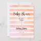 Aproveite jogar este jogo de Desejos por Bebê, chá de fraldas sobre o fundo das listras de cor branca, cor de coral e branca. Bonita, rosa, flamingo com conchas brancas de moluscos nas costas com modelos criados para você.