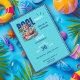 Faça um salto com nossa adorável Convite de aniversário de Piscina, apresentando um flamingo cor-de-rosa na moda flutuando em um tubo interno rosa, branco e listrado azul. Com os óculos de sol descansando na testa e cercada por sotaques tropicais encantadores, ela está pronta para uma celebração ensolarada! O plano de fundo azul refrescante e as letras ousadas de "FESTA PISCINA" criam a vibração perfeita do verão, fazer este convite que um deve ter para qualquer robalo. Quer você esteja planejando uma festa de aniversário para crianças ou adultos, este convite personalizável adiciona um toque divertido e festivo ao seu evento especial. Personalize os detalhes para torná-lo exclusivamente seu e se prepare para receber uma celebração que seus hóspedes irão amar!