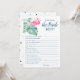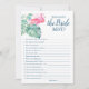 Escapar aos trópicos para um final de semana de despedida de solteira divertido? Vivendo a festa com essa diversão que conhece o melhor jogo da noiva. Este design de na moda cinzenta apresenta a minha cor-de-água original rosa flamingo e uma exuberante arte tropical. Personalize este cartão com as suas próprias perguntas para uma divertida atividade interativa de chá de panela. A pessoa com as respostas mais corretas às perguntas ganha! Perfeito para uma festa de solteira, festa de galinha, chá de panela ou fim de semana de meninas! Para ver a suíte correspondente visite www.zazzle.com/vginvites