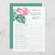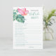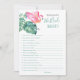 Escapar aos trópicos para um final de semana de despedida de solteira divertido? Vivendo a festa com essa diversão que conhece o melhor jogo da noiva. Este design de na moda cinzenta apresenta a minha cor-de-água original rosa flamingo e uma exuberante arte tropical. Personalize este cartão com as suas próprias perguntas para uma divertida atividade interativa de chá de panela. A pessoa com as respostas mais corretas às perguntas ganha! Perfeito para uma festa de solteira, festa de galinha, chá de panela ou fim de semana de meninas! Para ver a suíte correspondente visite www.zazzle.com/dotellabelle