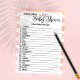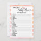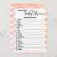 Cor aquosa, coral de pêssego feminino e fundo de listras brancas. Bonito, rosa, flamingo no meio da escrita "Chá de fraldas". Modelo criou para vocês neste Jogo do Bebê Animal, com 20 nomes de animais e seus convidados podem adivinhar qual é o nome de cada bebê.