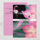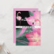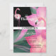 Duas lindas aves rosadas flamingas, cortadas em rosas brancas e rosa, são colocadas sobre um fundo floral, rosa, verde e preto tropical que tem fontes personalizadas brancas e pretas para sua redação personalizada. Este design chic e na moda é ideal para um chá de panela "temido cor-de-rosa e preto" ou "temido flamingo"; festa de aniversário ou mesmo evento comercial.