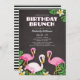 flamingos cor-de-rosa, brancos e bolinhas com folhas de monstera e flores de plumeria. Este olhar tropical no quadro de chanfro, com listras nas costas é perfeito para o seu brunch de aniversário temido.