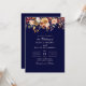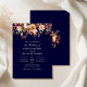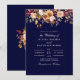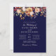 Concebido para impressionar, este convite apresenta um deslumbrante fundo azul-marinho que contrasta lindamente com as vibrantes flores silvestres laranja queimado e o texto de cor clara. Perfeito para um casamento moderno e sofisticado, este design captura a essência da elegância e do romance, tornando-o uma escolha ideal para celebrações de verão e outono.