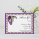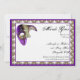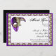 Este convite de festas divertido é perfeito para a sua festa do Mardi Gras ou bola de mascarada. O fundo é roxo com uma borda de padrão de flur de lis de ouro e branco. Há uma inserção branca para realçar seu texto e uma linda máscara de meia roxa e dourada no lado esquerdo.