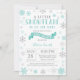 Convite para Chá de fraldas de inverno. Aqua Snowflake. Convite para Chás de fraldas de Menino ou Menina. Convite para Chá de fraldas de férias de inverno. Aqua e Cinzas Silver Flocos de Neve. Fundo Branco. Para mais personalização, clique no botão "Personalizar" e use nossa ferramenta de design para modificar este modelo.