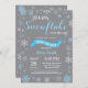 Convite do chá de fraldas do inverno. Floco de neve branco e cinzento azul. Convite do chá de fraldas do menino. O chá de fraldas do feriado de inverno convida. Flocos de neve azuis e brancos. Fundo cinzento. Para uma personalização mais adicional, clique por favor "personalizam-no" botão e usam-nos nossa ferramenta de design para alterar este modelo.