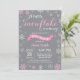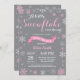 Convite do chá de fraldas do inverno. Floco de neve branco e cinzento cor-de-rosa. Convite do chá de fraldas da menina. O chá de fraldas do feriado de inverno convida. Flocos de neve cor-de-rosa e brancos. Fundo cinzento. Para uma personalização mais adicional, clique por favor "personalizam-no" botão e usam-nos nossa ferramenta de design para alterar este modelo.