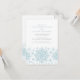 Flocos de neve de cor azul muito elegantes criam uma bonito borda ao longo do final deste convite de aniversário para adultos. A design moderna e minimalista tem uma sensação aberta e arejada. A estética contemporânea apelará a pessoas de todas as idades.