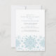 Flocos de neve de cor azul muito elegantes criam uma bonito borda ao longo do final deste convite de aniversário para adultos. A design moderna e minimalista tem uma sensação aberta e arejada. A estética contemporânea apelará a pessoas de todas as idades.