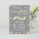 Convite para Chá de fraldas de inverno. Branco amarelo e floco de neve Cinza. Convite para Chás de fraldas de Menino ou Menina. Convite para Chá de fraldas de férias de inverno. Flocos de neve amarelos e brancos. Fundo das cinzas. Para mais personalização, clique no botão "Personalizar" e use nossa ferramenta de design para modificar este modelo.