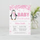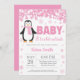 Convite do floco de neve do chá de fraldas da menina do rosa do inverno do pinguim. Bebê seu convite exterior frio do chá de fraldas. Floco de neve cor-de-rosa. Convite do chá de fraldas da menina. O chá de fraldas do feriado de inverno convida. Fundo branco. Para uma personalização mais adicional, clique por favor "personalizam-no" botão e usam-nos nossa ferramenta de design para alterar este modelo.