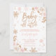 Chá de fraldas De Inverno, Dourado E Rosa, Convite Para Flocos De Neve