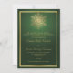 Floco de neve Dourado no convite do casamento no inverno verde que apresenta um floco de neve ouro sobre fundo verde. Esta design personalizada é uma modelo completamente personalizável e faz parte de um jogo perfeito para um casamento de dezembro de inverno ou de Natal.