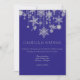 Um convite de casamento para terras maravilhosas de Natal com flocos de neve roxos e prateados é perfeito para a temporada de festas. em um fundo de aquarela violeta escura apresentando um quadro de floco de neve branco e cinza prateada.