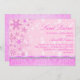 Este elegante e personalizável Convite 16 apresenta Flocos de Neve cor-de-rosa num fundo de rosa claro. Personalize adicionando seus detalhes na fonte de sua escolha! Nota: Os diamantes são uma imagem impressa.