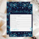 Este elegante e glamouroso pedido para o cartão de bebê apresenta flocos de neve azul-aquarela e falso-prateado e faíscas sobre um fundo azul-marinho. É perfeito para um chá de fraldas temático de inverno ou Natal.