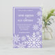 Casamento no inverno com flocos de neve brancos, quadro e nomes de casal de noiva em um fundo roxo claro. A parte de trás da carta tem um padrão uniforme de flocos de neve brancos. Convide para um casamento no inverno. Personalizável - adicione seu próprio texto. Se você se sentir mais criativo você pode design ainda mais com a ferramenta design, mover elementos, mudar a fonte e a cor de fundo. Veja seu design final antes de comprar. Faça disso um dia para se juntarem e se lembrarem. Celebração do amor na terra maravilhosa do inverno.