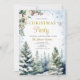 Festa de Natal de inverno Branca e Azul Prata Flocos de Neve Convite Pine Trees