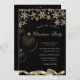 Um convite elegante para festa de feriado com flocos de neve dourados e bolas de Natal pretas em um fundo preto. Esses convites de Natal lindos são perfeitos para convites de jantar de Natal, convites de troca de presentes de feriado, arrecadações de Natal, convites de baile de feriado e outros eventos realizados durante o mês de dezembro. Basta usar os campos do modelo para adicionar as informações do seu evento.