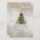 Flocos de neve de ouro, luzes de cordas, pinheiro de Natal com arco vermelho. Estes belos convites de Natal são perfeitos para convites de festas de janto de Natal, convites para troca de presentes de Natal, angariadores de fundos de Natal, convites para bolas de férias e outros eventos realizados durante o mês de dezembro. Use apenas os campos modelo para adicionar suas próprias informações de evento.