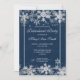 Produtos de harmonização disponíveis! De "convites elegantes do partido aposentadoria" para homens e mulheres! Projete com motivo dos flocos de neve do inverno da prata dos azuis marinhos, nomes feitos sob encomenda e texto da data. Fácil de usar e fácil personalizar.