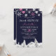 Flocos de neve elegante, doce inverno 16/16º modelo sobre fundo azul escuro marinho apresentando bordas de flocos de neve brancos e magenta cor-de-rosa e pinheiros Maravilha de inverno. Preencha suas informações nos pontos, Você pode optar por personalizá-las mudando ainda mais as fontes e as cores das letras. — Observe que a cor de fundo é editável. Você pode alterá-lo após selecionar a opção PERSONALIZAR.—O convite é adequado para festas de aniversário de inverno inspiradas por países rústicos montanhas quentes. — Se precisar de assistência, por favor, entre em contato comigo!