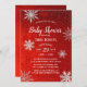 Chá de fraldas de inverno Flocos de neve prateados com legantes convites vermelhos.