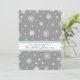 Convites de chá de panela para as férias de Natal ou época de inverno em cinzas elegantes e modernas de carvão escuro, padrão festivo e branco de festivos e bonito flocos de neve, quic e feminino, personalizáveis com seus detalhes de chá. Também disponível em cartões de agradecimento e convites para a festa noiva.