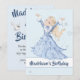 Uma princesa encantada em um casaco azul é a base deste design de Natal sazonal. O design está numa espiral de flocos de neve prateados. Belo aniversário de Natal ou design para sua princesa especial.