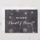 O quadro de neve moderno de inverno será meu cartão de Madrinha de casamento. Na moda, quadro negro elegante e original com fundo branco de flocos de neve. Um tema de casamento elegante preto e branco perfeito para a maravilha do inverno, tema de casamento de Natal.O texto é totalmente personalizável