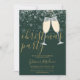 Um elegante convite de festas de Natal com óculos de champanhe, flocos de neve e nome de script de assinatura. Este convite para na moda pode ser personalizado com a sua informação em letras na moda de ouro num fundo eserald verde. Projetado por Thisnotme©