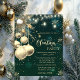 Esferas de Natal elegantes, luzes de cordas e estrelas em fundo verde. Estes belos convites de Natal são perfeitos para convites de festas de janto de Natal, convites para troca de presentes de Natal, angariadores de fundos de Natal, convites para bolas de férias e outros eventos realizados durante o mês de dezembro. Use apenas os campos modelo para adicionar suas próprias informações de evento.