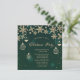 Bolas de Natal de ouro elegantes, e floco de neve em fundo verde. Estes belos convites de Natal são perfeitos para convites de festas de janto de Natal, convites para troca de presentes de Natal, angariadores de fundos de Natal, convites para bolas de férias e outros eventos realizados durante o mês de dezembro. Use apenas os campos modelo para adicionar suas próprias informações de evento.