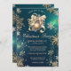 Um convite elegante para festas de férias com bolas de Natal de ouro e flocos de neve em fundo verde. Estes belos convites de Natal são perfeitos para convites de festas de janto de Natal, convites para troca de presentes de Natal, angariadores de fundos de Natal, convites para bolas de férias e outros eventos realizados durante o mês de dezembro. Use apenas os campos modelo para adicionar suas próprias informações de evento.