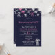 Festa elegante russa de inverno para aquecimento doméstico / modelo de convite para na moda de churrasco de no fundo azul escuro da meia-noite apresentando um monte de flores brancas para o hálito do bebê em vaso e borda branca rosa magenta para flocos de neve. Você pode personalizá-lo alterando ainda mais as fontes e as cores das letras. — Observe que a cor de fundo é editável em ambos os lados. Você pode alterá-lo após selecionar a opção PERSONALIZAR. — O convite é adequado para elegantes chic Winter rustic country inspirou churrascos/festas para casas. — Se precisar de assistência, por favor, entre em contato comigo!