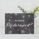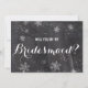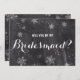 Flocos de neve modernos no inverno... você será meu cartão de dama de honra. Na moda, quadro negro elegante e original com fundo branco de flocos de neve. Um tema de casamento elegante preto e branco perfeito para a maravilha do inverno, tema de casamento de Natal.O texto é totalmente personalizável