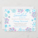 Este convite elegante e glamouroso apresenta flocos de neve brilhantes e faíscas de cor-d-água roxa e azul-turquesa sobre fundo branco. É perfeito para um chá de fraldas temático de inverno ou Natal.