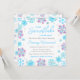 Este convite elegante e glamouroso apresenta flocos de neve brilhantes e faíscas de cor-d-água roxa e azul-turquesa sobre fundo branco. É perfeito para um chá de fraldas temático de inverno ou Natal.