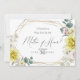 CONVITE À PROPOSTA DE PARTES BRIDAIS | Formas geométricas com tons de flores amarelas ensolaradas e magnólias de marfim e peônias escamoteadas - um quadro de terrário multifacetado, geométrico em ouro, adornado com buquês verdes e florais. O reverso é uma cor complementar coordenada. Personalizar texto, estilo de fonte, cor e tamanho. Arte original criada para o BarefootBride™ por © WhimsicalArtwork™ - Esta é parte de um Conjunto completo de Artes de Casamento, chá de fraldas e outros artigos de papelaria para eventos semelhantes.