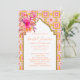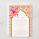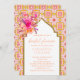 Um belo chá de panela floral cor-de-rosa e amarelo com um fundo de azulejo retrorreflector. Localizar itens correspondentes no meu compro.