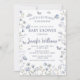 Borboletas de cor azul-poeirenta com flores silvestres caem floralmente, é um convite para chás de fraldas de menino. Chá elegante e azul, pequenino, menino.