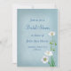 Uma foto de uma bela flor branca colocada sobre um fundo azul mosqueado. Este design modelo de chá de panela de de vem em várias cores e também pode ser personalizado em suas próprias cores, contatando-me em mshake5918@yahoo.com. Esta design romântica também vem em muitos outros produtos de papel e postagem para se adequar a todas as suas necessidades de casamento.
