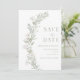 Incômoda na sofisticação com nossos refinados convites para Salvar a Data, com uma delicada coroa branca de folhas verdes empoeiradas entrelaçadas com flores brancas. Elevem a antecipação para o seu casamento com este convite especial e único.