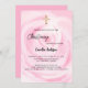 Um close de uma rosa-rosa macia, flor. Personalize e adicione o nome da futura mãe e os detalhes da festa.