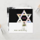 Estrela de David e flor da vida rodeiam as palavras que transmitem as emoções e o significado por trás do dia do casamento judeu.