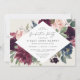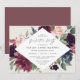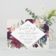 O convite para a festa de formatura floral elegante apresenta um quadro em forma de diamante de flores a aquarelas e folhagem em tons ricos de ameixa burlada, roxo, verde-sábio escuro, rosa poeirento e rosa-pincel. Personalize com seus detalhes de festa de formatura.